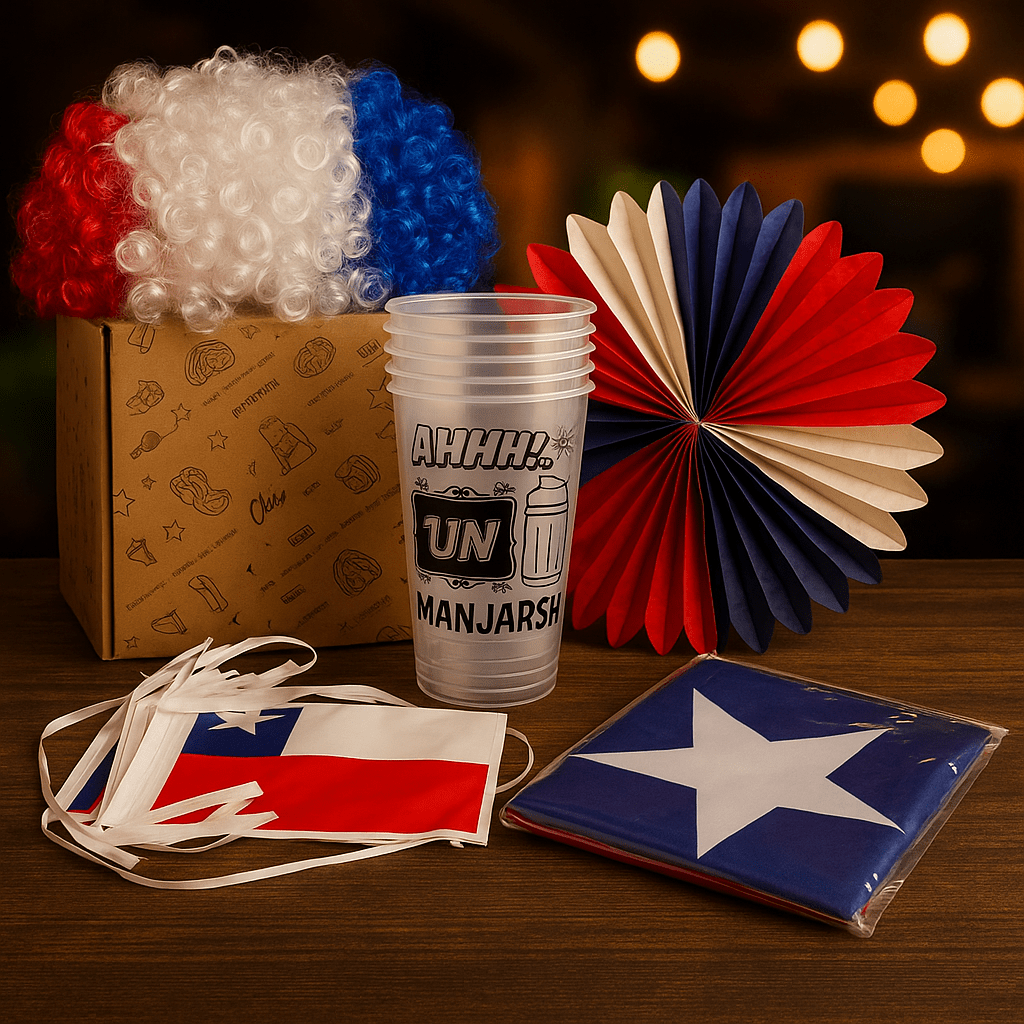Todo lo que necesitas para celebrar Fiestas Patrias con alegría, buena presentación y sentido práctico. Un set completo para ambientar tu espacio con estilo y cumplir la normativa vigente.